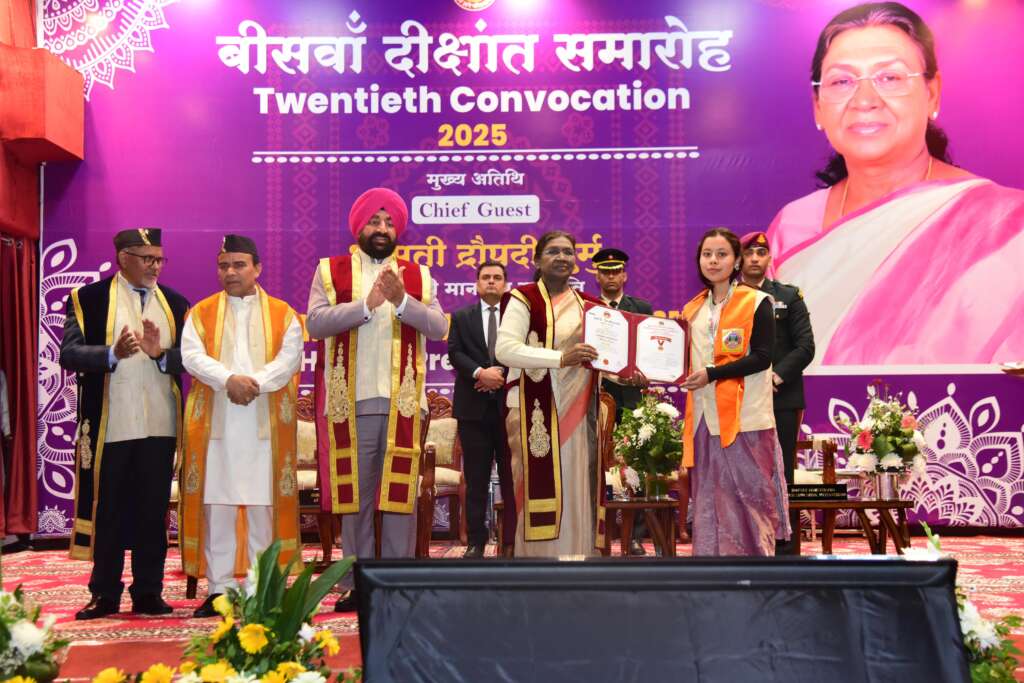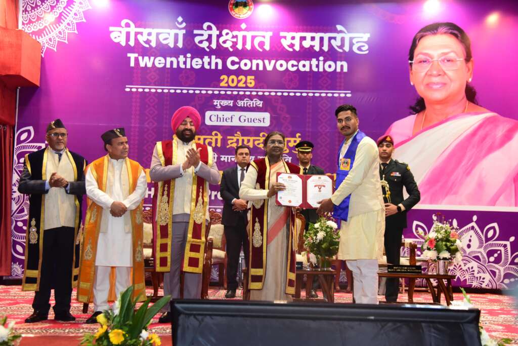 उन्होंने विद्यार्थियों से कहा कि वे अपने जीवन में सत्य, करुणा और ईमानदारी को आधार बनाएं तथा “विकसित भारत@2047” के संकल्प को साकार करने में सक्रिय भूमिका निभाएँ। उन्होंने यह भी कहा कि आने वाले वर्षों में भारत को विश्वगुरु बनाने में युवाओं की भूमिका सबसे महत्वपूर्ण होगी। राष्ट्रपति महोदया ने पदक प्राप्त करने वाले विद्यार्थियों को बधाई देते हुए कहा कि उनकी उपलब्धियाँ न केवल उनके परिश्रम का परिणाम हैं, बल्कि परिवार, शिक्षकों और विश्वविद्यालय के सामूहिक प्रयासों का भी प्रतिफल हैं।