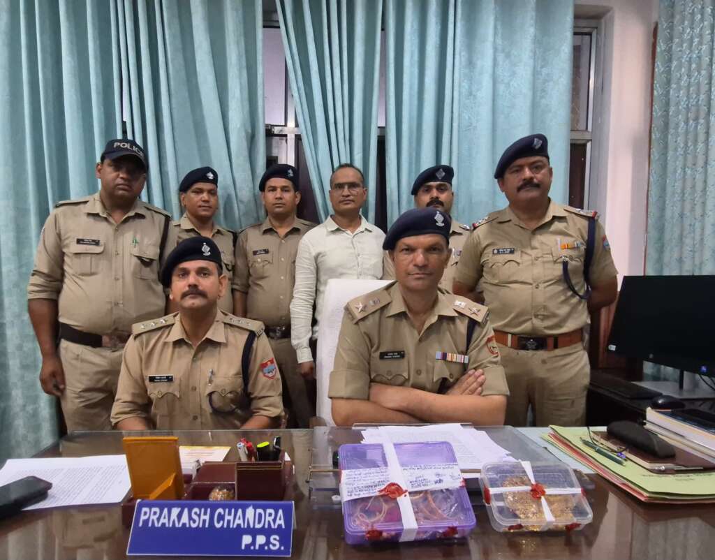 अभियुक्त से बरामद माल थाना मुखानी (14 तोला)और थाना लालकुआं (8 तोला) से संबंधित कुल 22 तोला प्राप्त हुआ