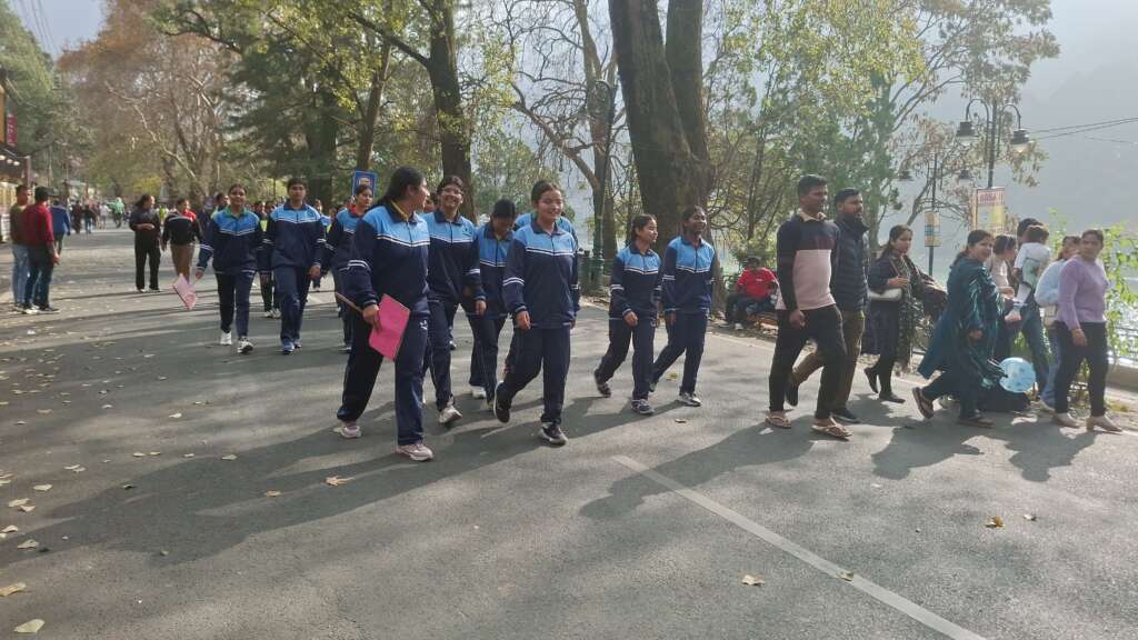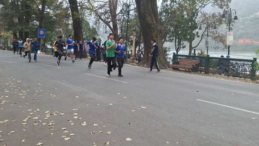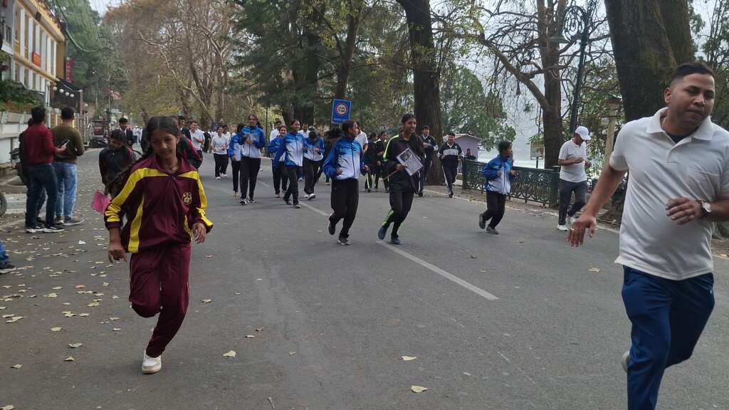 नैनीताल :- RUN FOR UNITY कार्यक्रम में युवाओं और पुलिस कर्मियों को राष्ट्र की एकता, अखंडता और सुरक्षा को अक्षुण्ण बनाए रखने की शपथ दिलाई गई नगर में आयोजित कार्यक्रम में डॉट से कोतवाली मल्लीताल तक दौड़ का आयोजन किया गया, जिसमें श्री ललित मोहन रयाल जिलाधिकारी नैनीताल द्वारा बतौर मुख्य अतिथि रहकर सभी प्रतिभागियों को एकता और अखंडता की शपथ दिलाई गई और हरी झंडी दिखाकर दौड़ का प्रारंभ किया गया। कार्यक्रम में व्यापार मंडल तल्लीताल, मल्लीताल, नाव चालक समिति के सदस्यों, सेंट मेरी, सेंट जोसफ, ऑल सेंट्स, लॉन्गव्यू, बिशप, पी0एम0 र 0इ0 कॉलेज तल्लीताल स्कूल के छात्र छात्राओं, थाना तल्लीताल, मल्लीताल, पुलिस लाईन व पुलिस कार्यालय नैनीताल एवं फायर सर्विस बल कुल 472 लोगों ने प्रतिभाग किया। इस दौरान डॉ जगदीश चंद्र एसपी क्राइम/ट्रैफिक नैनीताल,श्री अमित कुमार सीओ नैनीताल, श्री सुमित पांडे सीओ रामनगर, श्री हेम चंद्र पंत प्रभारी निरीक्षक मल्लीताल, श्री मनोज नयाल थानाध्यक्ष तल्लीताल समेत अन्य पुलिस बल भी मौजूद रहे।