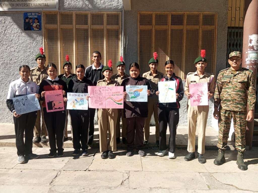 नैनीताल:- डीएसबी परिसर, नैनीताल की 79 यूके बटालियन एनसीसी द्वारा “वंदे मातरम् ” के 150 वर्ष पूर्ण होने के उपलक्ष्य में विविध कार्यक्रमों का आयोजन किया गया। इस अवसर पर देशभक्ति, एकता और समर्पण की भावना से ओतप्रोत वातावरण बना रहा।