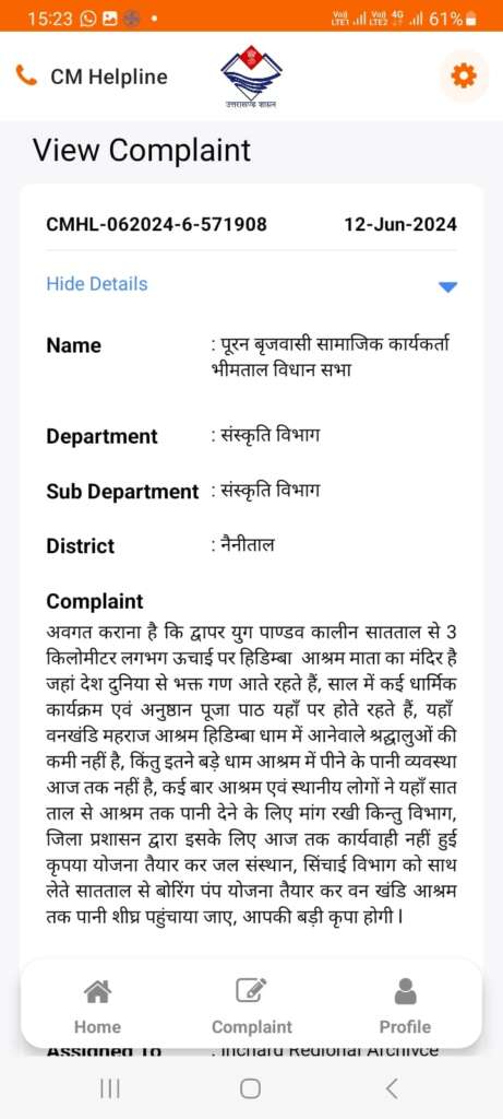 भीमताल:- पाण्डव कालीन सातताल से लगभग 3 किमी ऊपर वन खंडि आश्रम हिडिम्बा धाम में पानी की किल्लत का समाधान जल्द होगा। सामाजिक कार्यकर्ता पूरन चंद्र बृजवासी की लगातार कोशिशों के बाद जल संस्थान ने 173 लाख की डीपीआर गठित कर शासन को भेजी है, और शासन स्तर से ईएफसी की कार्यवाही पूर्ण हो चुकी है।