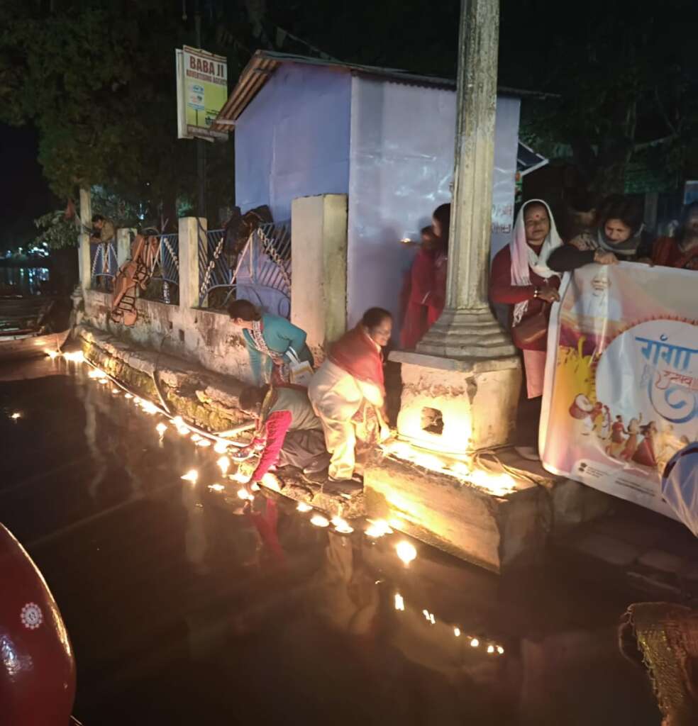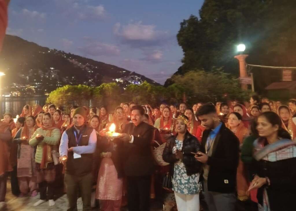 नैनीताल:-जिलाधिकारी नैनीताल के निर्देशानुसार दिनांक 4 नवंबर 2025 को गंगा नदी को राष्ट्रीय नदी घोषित किए जाने के उपलक्ष में नगर पालिका परिषद् नैनीताल के अंतर्गत मां नैना देवी प्रांगण में” गंगा उत्सव ” कार्यक्रम का आयोजन किया गया कार्यक्रम के अंतर्गत डे एन. यू. एल. एम योजना के तहत गठित महिला समूहों के सहयोग से गंगा आरती, गंगा स्वच्छता शपथ, दीपदान व श्रमदान कार्यक्रम आयोजित किया गया कार्यक्रम में अधिशासी अधिकारी नगर पालिका परिषद नैनीताल श्री रोहिताश शर्मा द्वारा महिलाओं को स्वच्छता की शपथ दिलाई गई वह शहर को स्वच्छ रखने में पूरे शहर से सहयोग प्रदान किये जाने का अनुरोध किया गया। कार्यक्रम में सभासद श्रीमती गजाला कमाल,कुमारी काजल आर्या, महिला समूहों की महिलाएं वह पालिका से कर अधीक्षक दीपेंद्र बमोला, निरीक्षक वेद प्रकाश,लेखाकार सिद्धार्थ शर्मा, पालिका अभियंता विपिन पुरोहित व कार्यक्रम के मुख्य संयोजक चंदन भंडारी, सोनू तिवारी, सीमा कुमार उपस्थित रहे