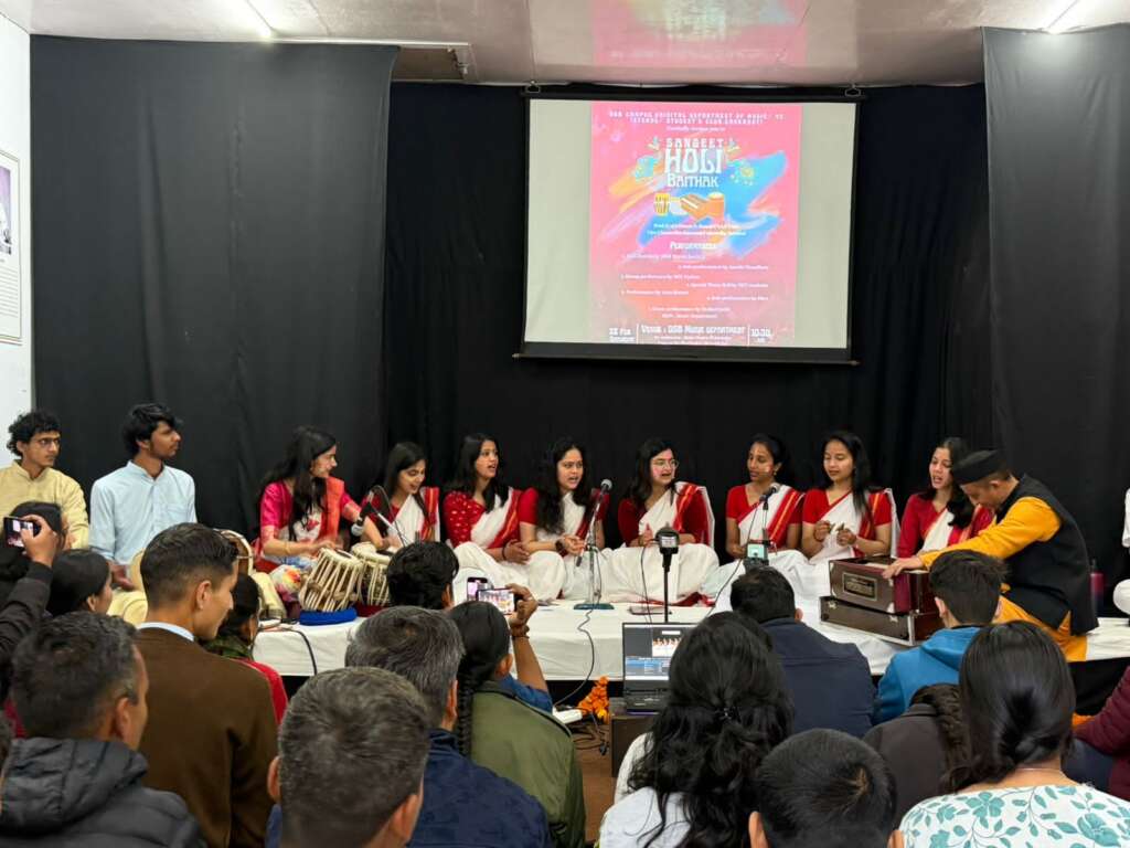 इस अवसर पर विद्यार्थियों द्वारा परंपरागत होली गायन की सुंदर प्रस्तुतियाँ दी गईं। डीएसबी म्यूज़िक सोसाइटी के विद्यार्थियों एवं एनसीसी कैडेट्स द्वारा एकल एवं समूह प्रस्तुतियों ने श्रोताओं को मंत्रमुग्ध कर दिया। कार्यक्रम में विद्यार्थियों ने विभिन्न रागों पर आधारित पारंपरिक होलियों का गायन प्रस्तुत कर शास्त्रीयता और लोक परंपरा का अद्भुत संगम प्रदर्शित किया।