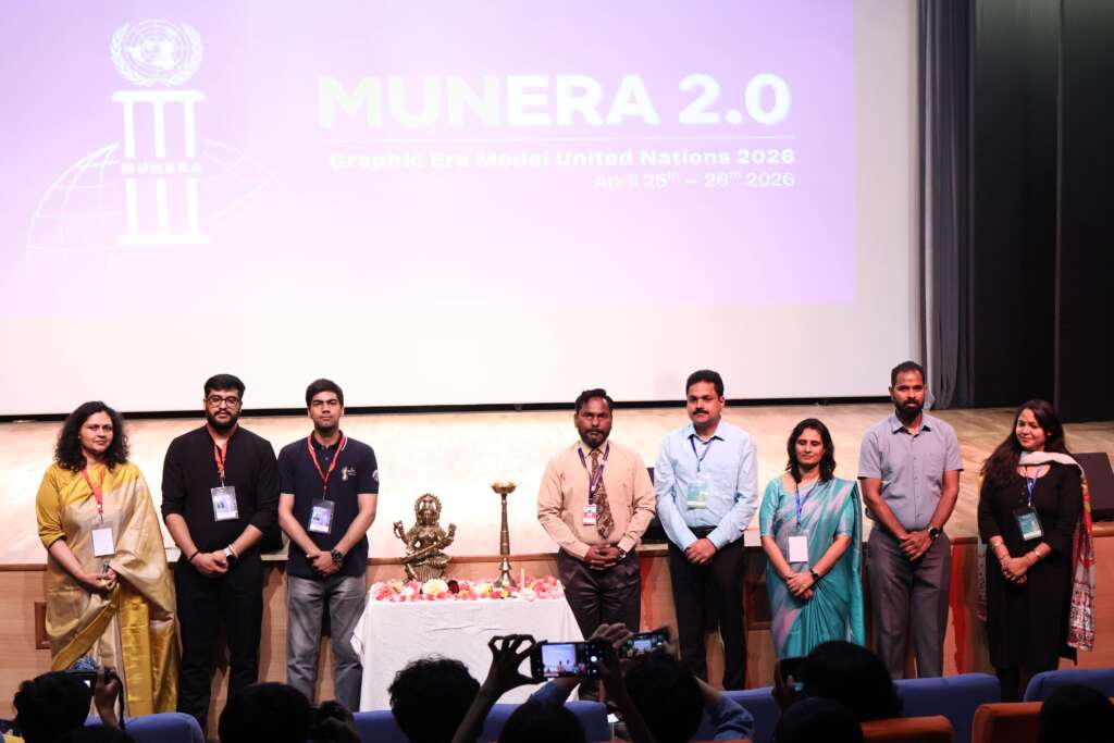 भीमताल/नैनीताल:-ग्राफिक एरा हिल यूनिवर्सिटी, भीमताल परिसर में शनिवार को मुनैरा 2.0 का भव्य शुभारंभ हुआ। तेजस्वी बुद्धिमत्ता, प्रभावशाली वक्तृत्व कला और वैश्विक दृष्टिकोण के संगम के रूप में आयोजित इस कार्यक्रम ने विद्यार्थियों को अंतरराष्ट्रीय मुद्दों पर चर्चा और कूटनीतिक संवाद का मंच प्रदान किया।वर्डव्हिम्स क्लब द्वारा आयोजित इस कार्यक्रम ने परिसर को वैश्विक एकता के रंगों से सजा दिया। विभिन्न देशों के झंडों से सुसज्जित परिसर ने पूरे आयोजन को अंतरराष्ट्रीय स्वरूप प्रदान किया। कार्यक्रम के दौरान विद्यार्थियों ने जोशीली बहसों, विचारोत्तेजक चर्चाओं और कूटनीतिक रणनीतियों के माध्यम से अपनी प्रतिभा का प्रदर्शन किया।कार्यक्रम का शुभारंभ दीप प्रज्वलन से हुआ, जिसके बाद भावपूर्ण वंदना एवं मनमोहक नृत्य प्रस्तुति ने वातावरण को आध्यात्मिक ऊर्जा से भर दिया।इस अवसर पर परिसर निदेशक ने अपने संबोधन में ग्राफिक एरा समूह के संस्थापक अध्यक्ष प्रो. (डॉ.) कमल घनशाला के दूरदर्शी नेतृत्व में संस्थान की प्रगति और विशेष रूप से दूरस्थ क्षेत्रों के विद्यार्थियों तक गुणवत्तापूर्ण शिक्षा पहुंचाने के प्रयासों पर प्रकाश डाला। उन्होंने कहा कि वर्तमान वैश्विक परिस्थितियों में मॉडल यूनाइटेड नेशंस जैसे आयोजन संवाद, सहयोग और सार्थक समाधान की दिशा में महत्वपूर्ण भूमिका निभाते हैं।कार्यक्रम में ईशिता कर्नाटक, सदस्य सलाहकार बोर्ड ने स्वागत भाषण दिया, जबकि सचिव-जनरल सागर सिंह रावत ने औपचारिक रूप से गैवल बजाकर मुनैरा 2.0 का उद्घाटन किया।मुनैरा 2.0 में विभिन्न समितियों का गठन किया गया, जिनमें संयुक्त राष्ट्र महासभा (DISEC), संयुक्त राष्ट्र मानवाधिकार परिषद, संयुक्त राष्ट्र विकास कार्यक्रम, ऑल इंडिया पॉलिटिकल पार्टी मीट, लोकसभा तथा इंटरनेशनल प्रेस शामिल रहे। इन समितियों में मध्य पूर्व मानवाधिकार संकट, बाहरी प्रवासन नीति, जीवाश्म ईंधन से संक्रमण के सामाजिक-आर्थिक प्रभाव, वन नेशन वन इलेक्शन, सीमा पार प्रवासन एवं राष्ट्रीय सुरक्षा जैसे विषयों पर गंभीर और रोचक बहस हुई।कार्यक्रम के प्रथम दिवस का समापन उत्साह और नई ऊर्जा के साथ हुआ। प्रतिभागियों ने आगामी सत्रों में और भी प्रभावशाली चर्चाओं की उम्मीद जताई।