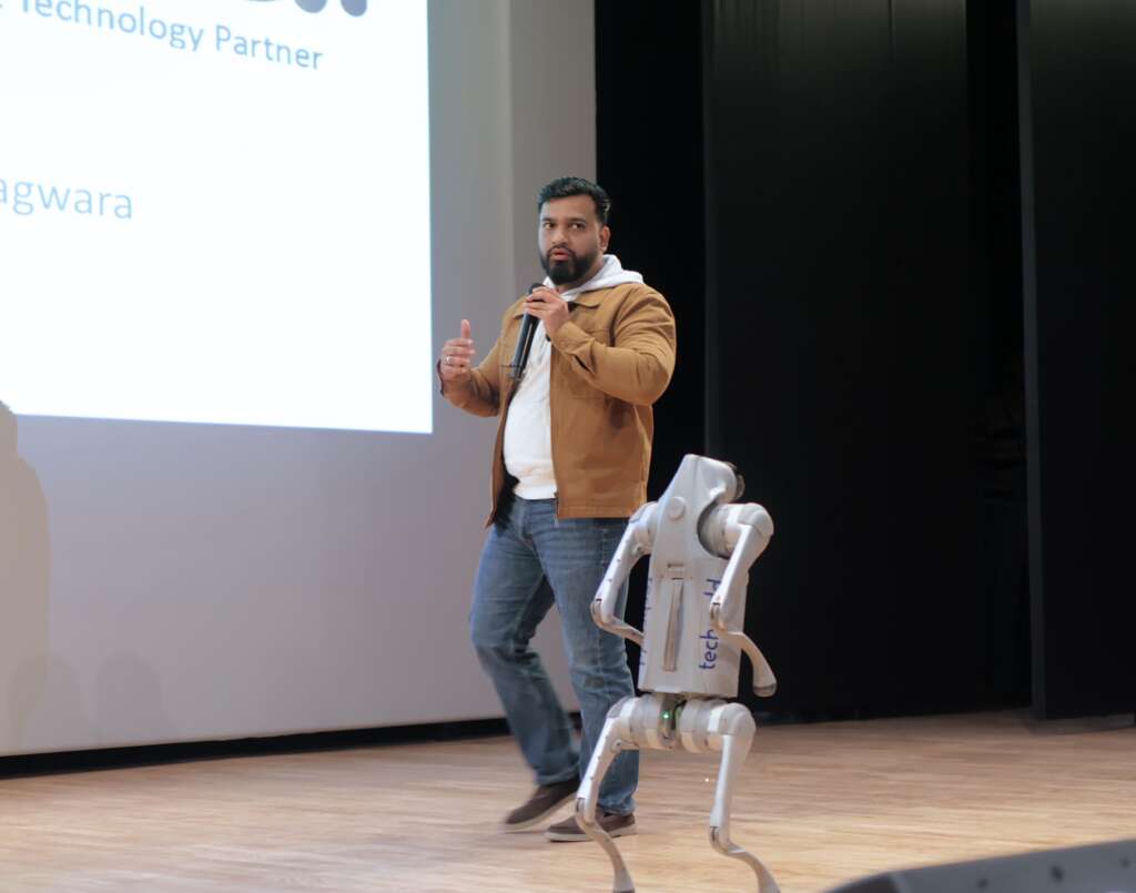 तकनीकी प्रदर्शन को और समृद्ध करते हुए गौरव गुप्ता, संस्थापक, टेककैड ने भारत के तीसरे और उत्तराखंड के पहले रोबो डॉग का प्रदर्शन किया। उन्होंने पायथन और सी++ जैसी प्रोग्रामिंग भाषाओं के माध्यम से एजीआई के व्यावहारिक उपयोग और बुद्धिमान रोबोटिक्स की संभावनाओं पर प्रकाश डाला।