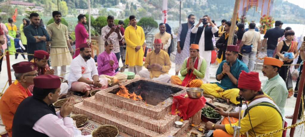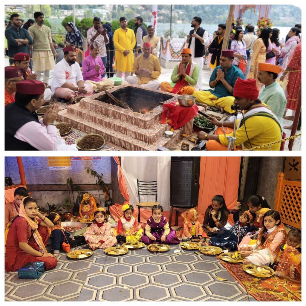 नैनीताल।सर्वजनिन दुर्गा पूजा कमेटी का 69वां दुर्गा पूजा महोत्सव जारी है। को चौथे दिन विभिन्न धार्मिक अनुष्ठान संपन्न कराए। नयना देवी मंदिर में बुधवार को हवन यज्ञ, कन्या पूजन के बाद भंडार किया गया। मुख्य पुजारी