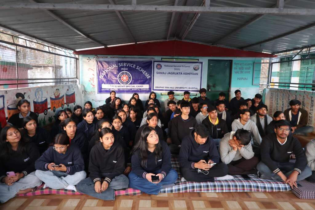 भीमताल /नैनीताल:-ग्राफिक एरा हिल यूनिवर्सिटी, भीमताल परिसर की राष्ट्रीय सेवा योजना (एनएसएस) इकाई द्वारा मॉडल राजकीय प्राथमिक विद्यालय–1, मेहरा गांव, ग्राम दोब ल्वेशाल, भीमताल में सात दिवसीय एवं रात्रि विशेष शिविर का शुभारंभ किया गया। यह शिविर 7 फरवरी से 13 फरवरी 2026 तक आयोजित किया जा रहा है, जिसमें 100 एनएसएस स्वयंसेवक सामुदायिक सेवा, सामाजिक जागरूकता एवं अनुभवात्मक शिक्षण में सक्रिय रूप से सहभागिता कर रहे हैं।