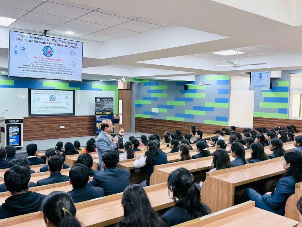 अपने व्याख्यान में प्रो. (डॉ.) दुरेजा ने डिजिटल थेरेप्यूटिक्स (DTx) की अवधारणा पर प्रकाश डाला। उन्होंने बताया कि यह साक्ष्य-आधारित चिकित्सीय हस्तक्षेप हैं जिन्हें सॉफ्टवेयर अनुप्रयोगों के माध्यम से लागू किया जाता है, ताकि विभिन्न बीमारियों की रोकथाम, प्रबंधन और उपचार किया जा सके। उन्होंने यह भी समझाया कि कैसे प्रौद्योगिकी, व्यवहार विज्ञान और डेटा विश्लेषण के एकीकरण से स्वास्थ्य सेवाओं में क्रांतिकारी परिवर्तन आ रहा है, जिससे उपचार की सुलभता और रोगी परिणामों में सुधार हुआ है।