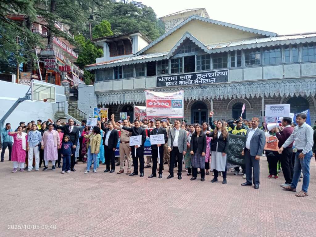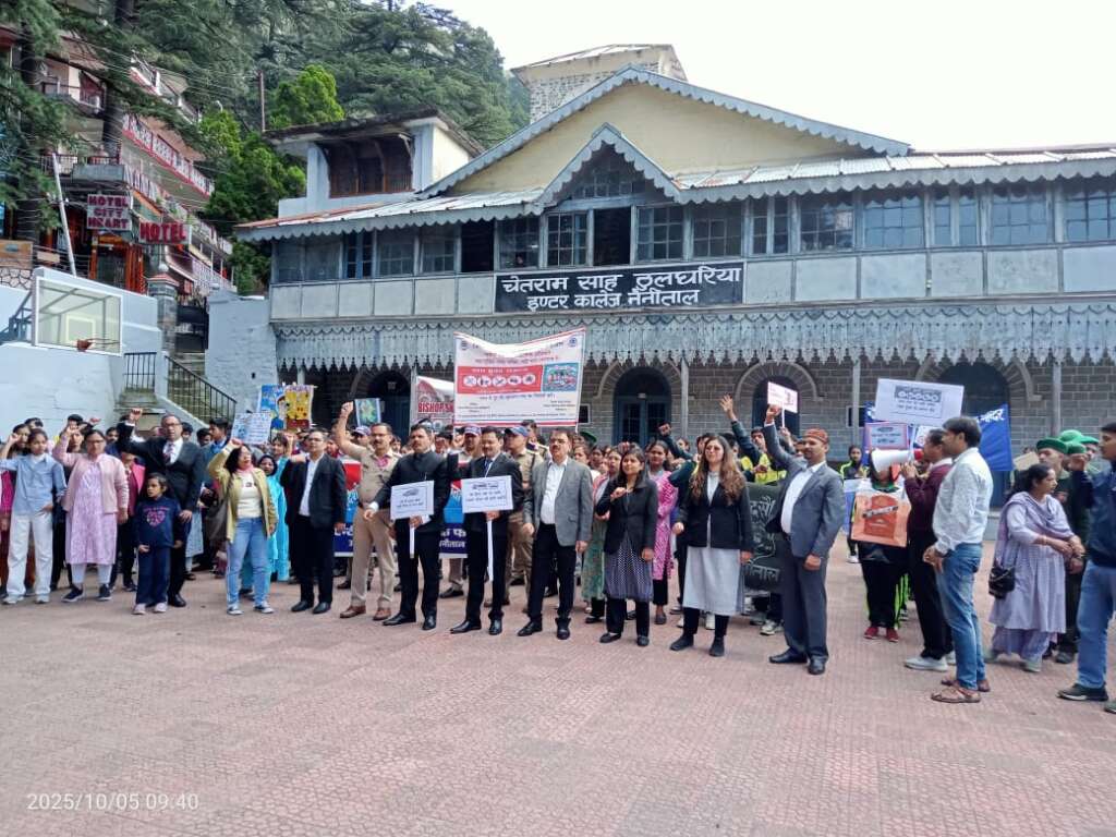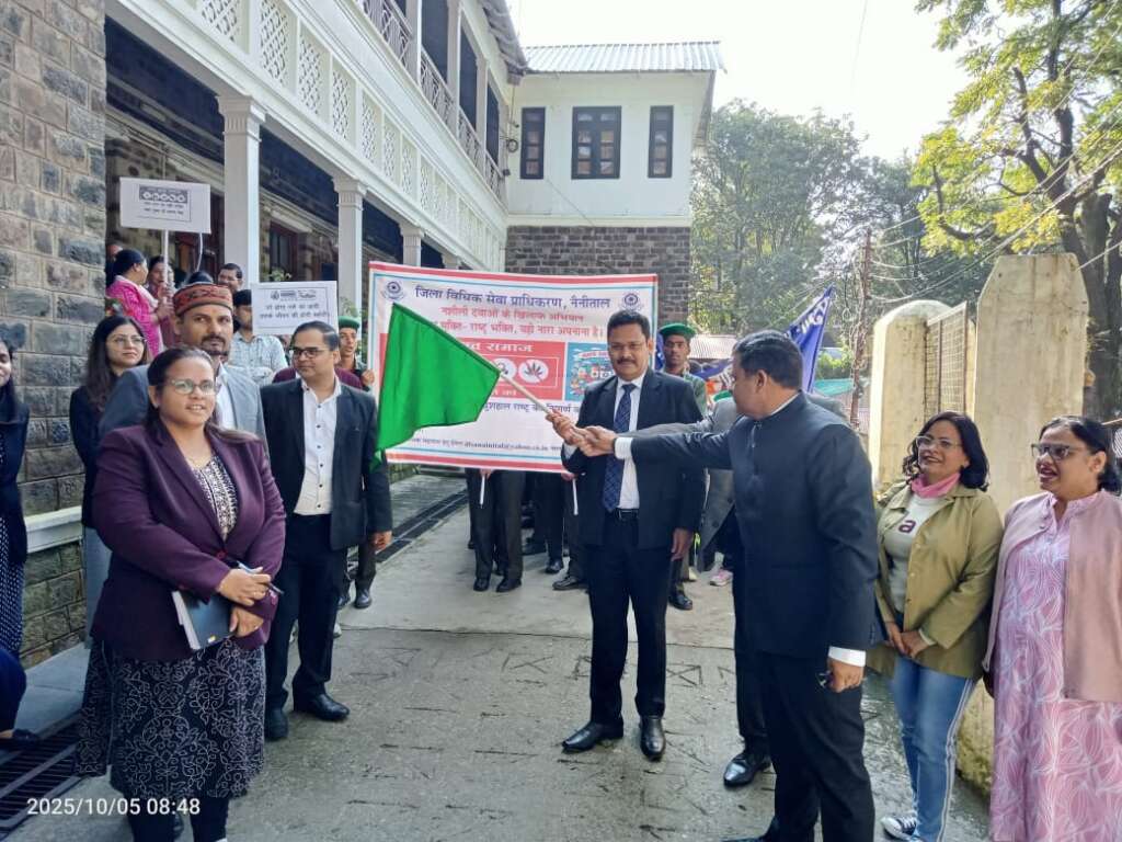 नैनीताल:- माननीय उत्तराखण्ड राज्य विधिक सेवा प्राधिकरण, नैनीताल के दिशा निर्देशानुसार एवं प्रभारी अध्यक्ष जिला विधिक सेवा प्राधिकरण, नैनीताल / प्रथम अपर जिला न्यायाधीश संजीव कुमार की अध्यक्षता में सिविल जज (सी०डि०) / सचिव, जिला विधिक सेवा प्राधिकरण, नैनीताल पारुल थपलियाल के द्वारा रविवार को जिला मुख्यालय नैनीताल के दिवानी न्यायालय परिसर (शिविल कोर्ट कैम्पस ) से नशीली दवाओं के खिलाफ अभियान के तहत विधिक साक्षरता एवं जागरुकता रैली का आयोजन किया गया। जागरूकता रैली का शुभारंभ प्रथम अपर जिला न्यायाधीश संजीव कुमार द्वारा हरी झंडी दिखाकर किया गया।