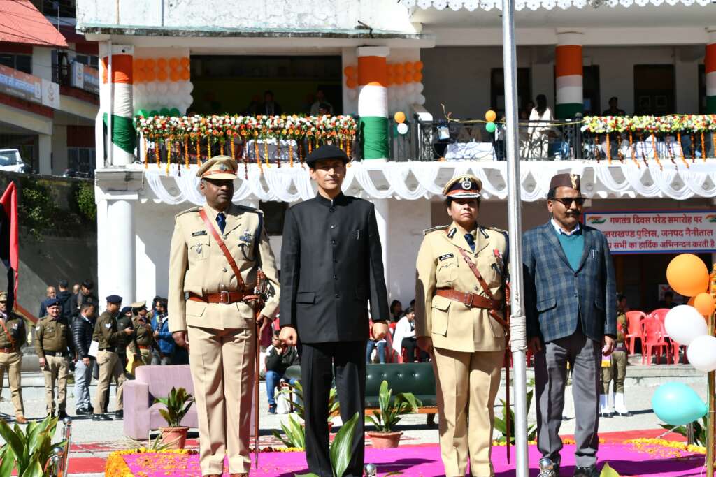 नैनीताल:-भारतीय गणराज्य के 77 वें स्थापना दिवस के अवसर पर आज दिनांक 26 जनवरी 2026 को नैनीताल पुलिस द्वारा डी.एस.ए. मैदान मल्लीताल, नैनीताल में भव्य एवं दिव्य रैतिक परेड का आयोजन किया गया। सर्वप्रथम डॉ0 मंजुनाथ टी0सी0 (आई.पी.एस.), एस0एस0पी0 नैनीताल द्वारा पुलिस सेरिमोनियल परिधान से सुसज्जित सशस्त्र पुलिस परेड की सलामी ली गई। इसके पश्चात क्रमश: श्री ललित मोहन रयाल (आई.ए.एस.) जिलाधिकारी नैनीताल, श्रीमती रिधिम अग्रवाल (आई.पी.एस.) पुलिस महानिरीक्षक कुमाऊं परिक्षेत्र नैनीताल द्वारा पुलिस परेड की सलामी ली गई।
