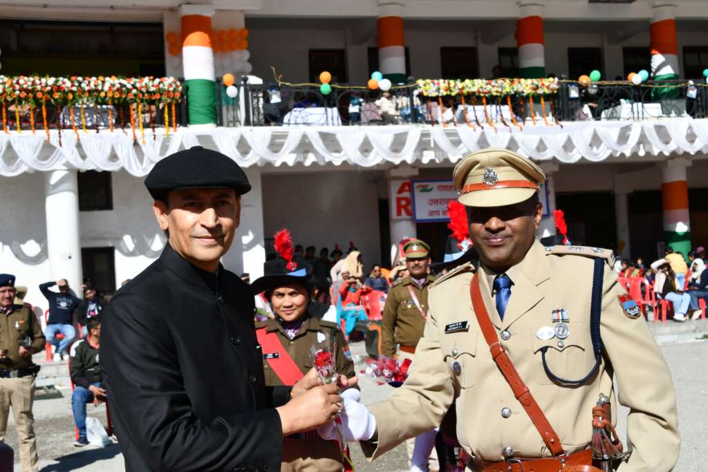 तदोपरांत रैतिक परेड के मुख्य अतिथि श्री दीपक रावत (आई.ए.एस.) कुमाऊं कमिश्नर के आगमन पर अलाइमेंट पर खड़ी सशस्त्र व सुसज्जित परेड द्वारा मुख्य अतिथि महोदय को सलामी देकर अभिवादन किया गया तथा ध्वजारोहण कार्यक्रम में राष्ट्रीय ध्वज को सलामी दी गई।