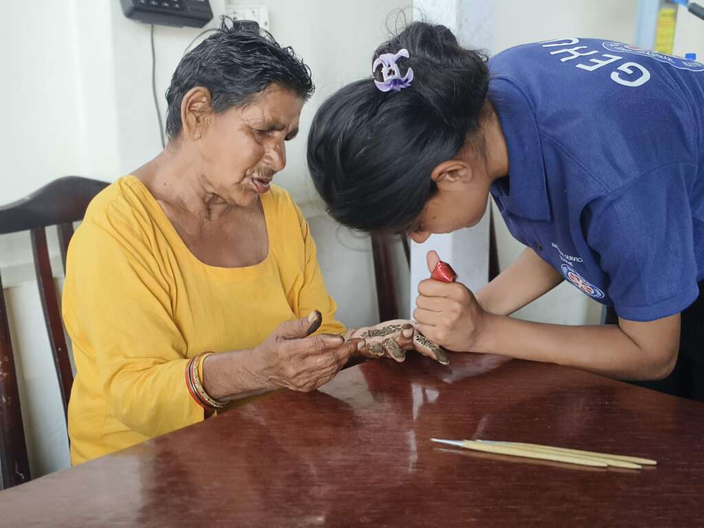 स्वयंसेवकों ने वृद्धाश्रम को रंग-बिरंगी रंगोलियों से सजाया, पारंपरिक घीरे डिजाइन से द्वारों को अलंकृत किया और वहां की मातृसमान महिलाओं के हाथों में मेहंदी रचाई। सभी ने मिलकर पहाड़ी गीतों पर नृत्य और संगीत का आनंद लिया, जिससे एक सुखद पारिवारिक माहौल बना और हर चेहरा खुशियों से दमक उठा।