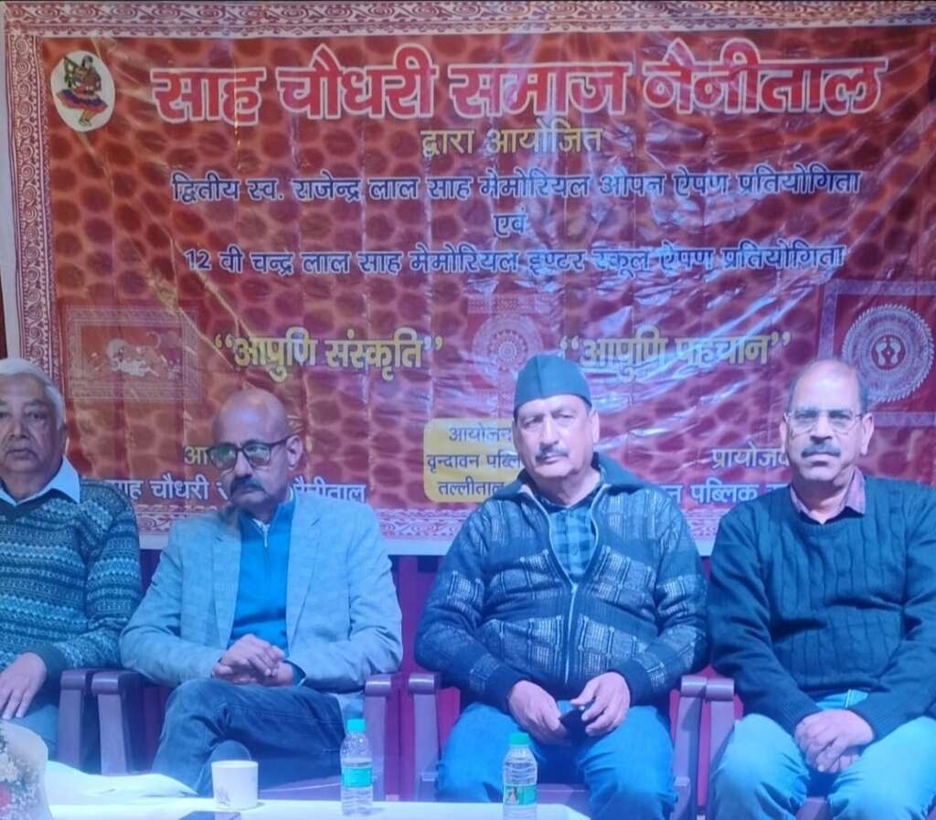 नैनीताल:- नगर में साह चौधरी समाज, नैनीताल द्वारा आयोजित द्वितीय स्वर्गीय राजेन्द्र लाल साह मेमोरियल ओपन ऐपण प्रतियोगिता एवं १२ वीं स्वर्गीय चन्द्र लाल साह मेमोरियल इण्टर स्कूल ऐपण प्रतियोगिता का आयोजन वृन्दावन पब्लिक स्कूल नैनीताल में किया गया।