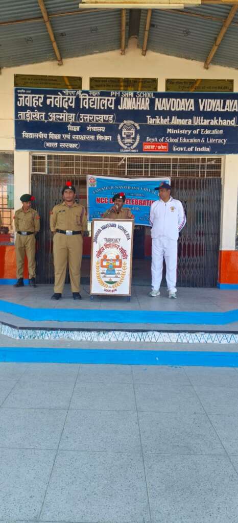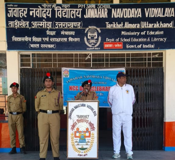 ताड़ीखेत/अल्मोड़ा। जवाहर नवोदय विद्यालय ताड़ीखेत में रविवार को एनसीसी दिवस बड़े उत्साह और अनुशासन के साथ मनाया गया। कार्यक्रम की अगुवाई प्रभारी प्राचार्या श्रीमती रेशमा मेहरा ने की, जबकि आयोजन का संचालन ए एन ओ लेफ्टिनेंट लाखन सिंह राणा (77 यूके बटालियन अल्मोड़ा, सीनियर डिवीजन) तथा सीटीओ इफ्तिखार अहमद (79 यूके बटालियन नैनीताल एवं 24 यूके गर्ल्स बटालियन अल्मोड़ा) के निर्देशन में हुआ।