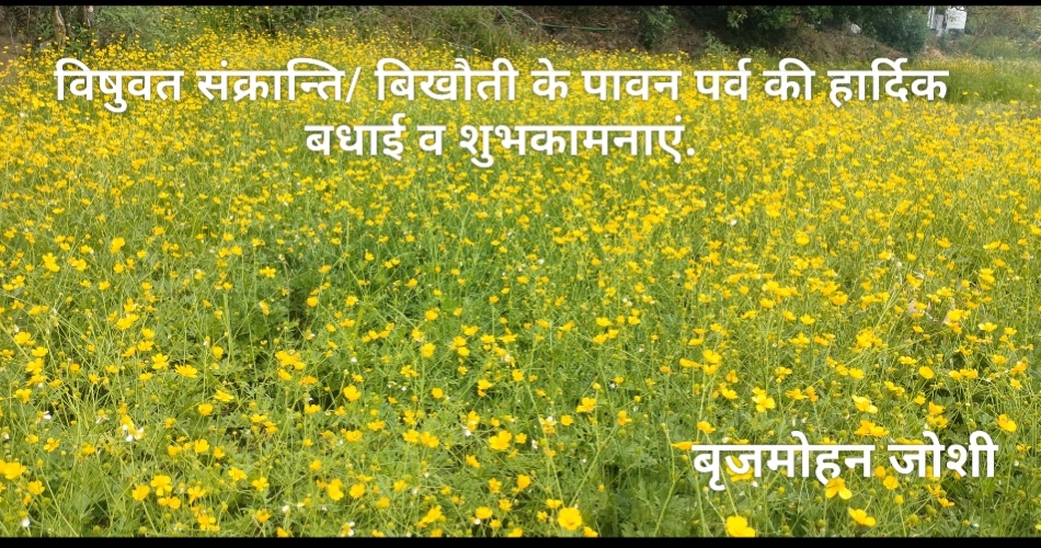 आप सभी महानुभावों को विषुवत संक्रान्ति अर्थात बिखौती/फूल संक्रान्ति के पावन पर्व की हार्दिक बधाई व शुभकामनाएं।