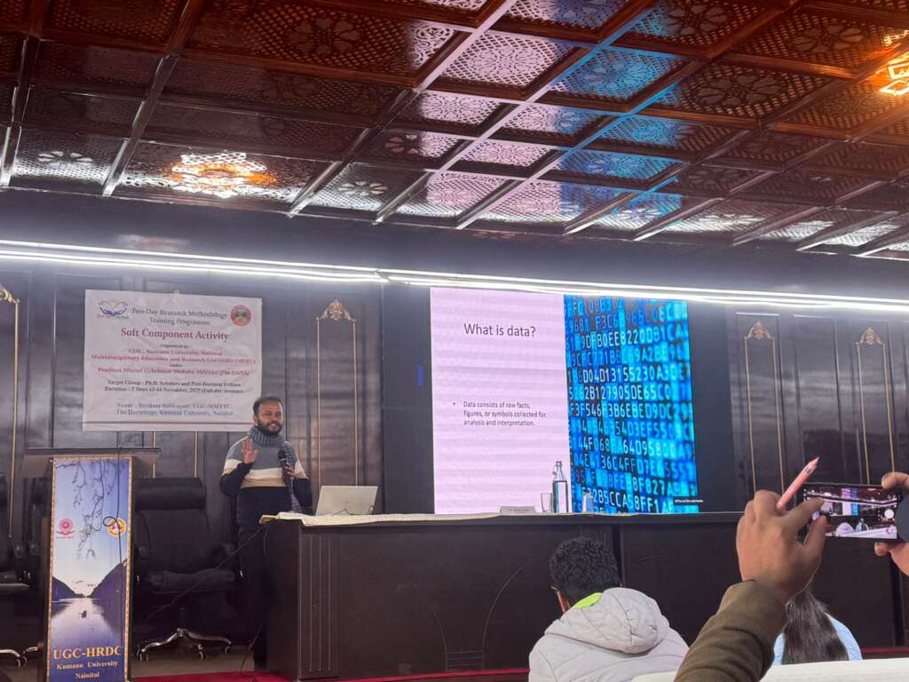 नैनीताल:-कुमाऊँ विश्वविद्यालय, नैनीताल के आइक्यूएसी द्वारा आयोजित दो दिवसीय “शोध पद्धति एवं शैक्षणिक लेखन प्रशिक्षण कार्यक्रम” का आज सफलतापूर्वक समापन हुआ। कार्यक्रम में शोधार्थियों और युवा शिक्षकों ने उत्साहपूर्वक भाग लिया।