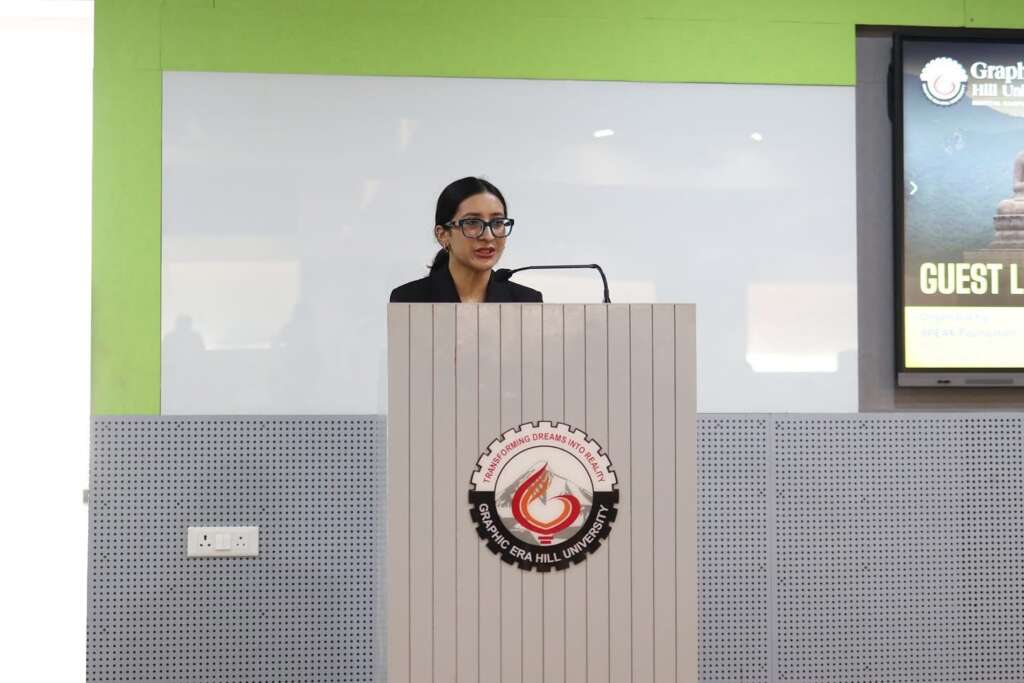भीमताल/नैनीताल:- ग्राफिक एरा हिल यूनिवर्सिटी, भीमताल परिसर के स्कूल ऑफ मैनेजमेंट द्वारा स्पीक फाउंडेशन (Stimulating People for Education, Awareness & Knowledge) के सहयोग से “माइंडफुल लीडरशिप: एप्लाइंग बुद्धिस्ट प्रिंसिपल्स इन मैनेजमेंट” विषय पर एक इंटरएक्टिव सत्र का आयोजन 16 अक्टूबर 2025 को किया गया। यह कार्यक्रम भारत सरकार के संस्कृति मंत्रालय के सहयोग से आयोजित किया गया, जिसका उद्देश्य बीबीए और एमबीए विद्यार्थियों में आत्म-जागरूकता, भावनात्मक बुद्धिमत्ता और मूल्य-आधारित नेतृत्व को प्रोत्साहित करना था।