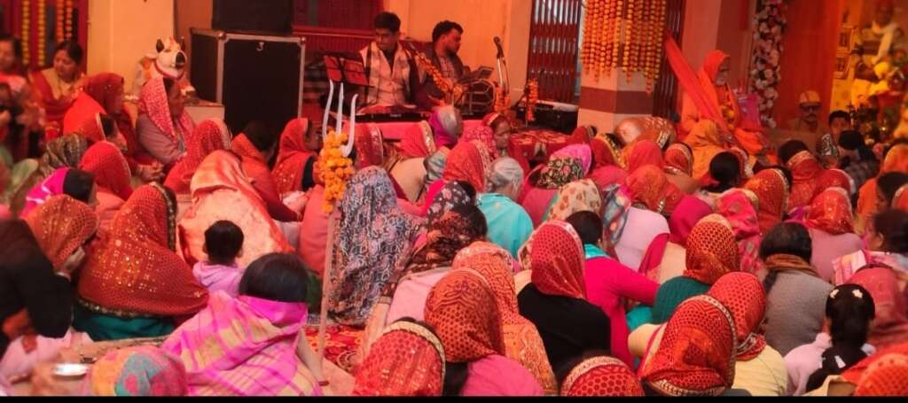 कथा से पूर्व संगीत गायकों आचार्य उमा शंकर कपिल,नीरज सती, आचार्य पंकज जोशी के द्वारा देवी भजन,गोल्ज्यू के सुन्दर भजन, तथा अनेक भजनों का गायन किया गया, जिसमें उपस्थित मातृशक्ति द्वारा भी उन भजनों को कर तल ध्वनि के साथ दोहराया गया।