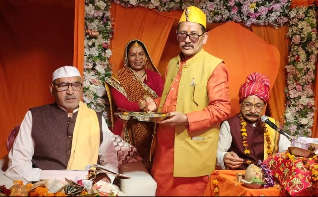 भवाली/नैनीताल:- श्रीमद् देवी भागवत कथा ज्ञान गंगा के पंचम दिवस आचार्य उप व्यास कैलाश चंद्र पांडे,आचार्य कैलाश चंद्र जोशी, आचार्य नीरज पलड़िया,मोहन चन्द कपिल,दीपेश कपिल तथा यजमान श्रीमती ऊषा तिवारी गिरीश तिवारी,श्रीमती गीता मेहरा अजय सिंह मेहरा द्वारा भगवती विग्रह पूजन,गणेश पूजन,पंचांग पूर्वांगादि पूजन, तथा मन्दिर परिसर में समस्त देवी-देवताओं का पूजन अर्चन किया गया।
