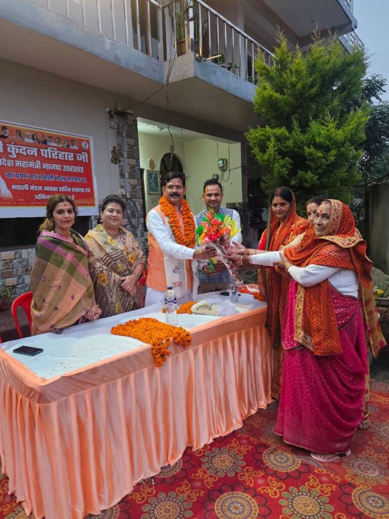 भवाली/नैनीताल:-भारतीय जनता पार्टी के प्रदेश महामंत्री कुंदन परिहार का पहली बार भवाली आगमन पर कार्यकर्ताओं ने उनका जोरदार स्वागत करते हुवे फूलमालाओं से सुसज्जित अंग वस्त्र भेंट कर उनका अभिनंदन किया अपने संबोधन में परिहार ने कहा कि भाजपा का असली बल कार्यकर्ता हैं उन्होंने कहा “कार्यकर्ता ही संगठन की शक्ति और आत्मा हैं” परिहार ने कार्यकर्ताओं से आह्वान किया कि सभी मिलकर पार्टी व प्रधामंत्री नरेंद्र मोदी के स्वदेशी अभियान की विचारधारा को जनता तक पहुँचाए कहा कि मुख्यमंत्री पुष्कर सिंह धामी के नेतृत्व वाली प्रदेश सरकार लगातार जनहित के निर्णय ले रही है जो विकास के लिए प्रतिबद्ध है कार्यक्रम में मण्डल अध्यक्ष हिमांशु बिष्ट महीला मोर्चा प्रदेश महामंत्री भावना मेहरा जिला उपाध्यक्ष प्रगति जैन ने भी संबोधित किया ने भी इस दौरान प्रकाश आर्या पूर्व पालिकाध्यक्ष संजय वर्मा शिवांशु जोशी कंचन साह प्रेम सिंह नेगी शुभम कुमार अमित पांडेय मोहित कुमार अंशुमान सिंह दफोती हिमांशु रावत आयुष कुमार कमला आर्या अंश चौधरी इशांत मेहरा कृष नेगी नीतु जोशी भगवती मेहरा धनी मेहरा लता शर्मा गीता पाठक कार्यक्रम का संचालन वर्षा आर्या ने किया।